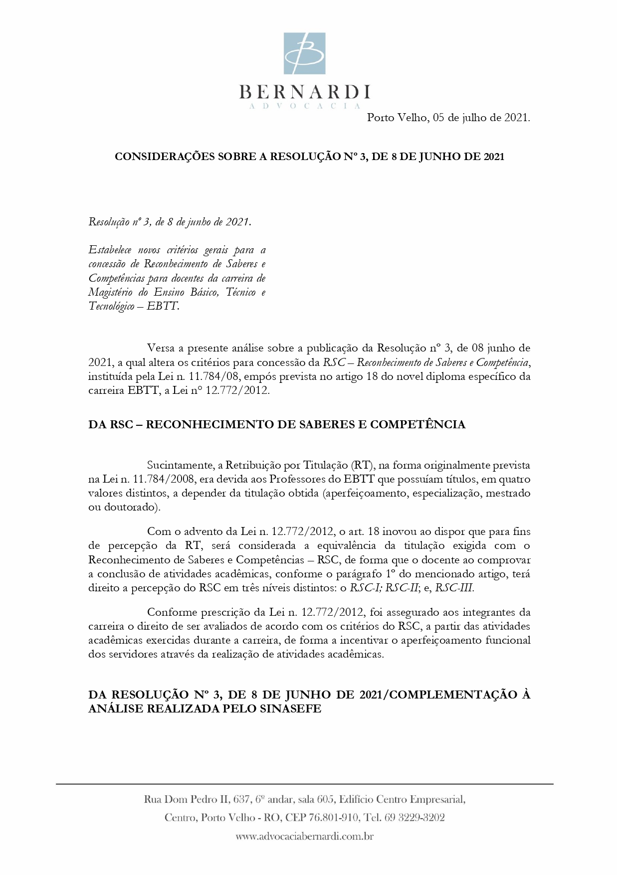 apresente análise sobre a publicação da Resolução nº 3, de 08 junho de 2021, a qual altera os critérios para concessão da RSC –Reconhecimento de Saberes e Competência
